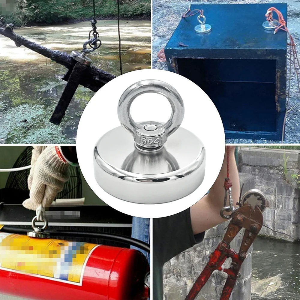 ▲Multi-purpose-unique design with countersunk holes and eye bolts is very suitable for fishing all kinds of iron-nickel materials underwater. It is a good idea for magnet fishing, lifting, hanging, and recycling applications. Search for eye bolts, screws, hooks, fasteners and other items in your warehouse garage or yard and have fun.